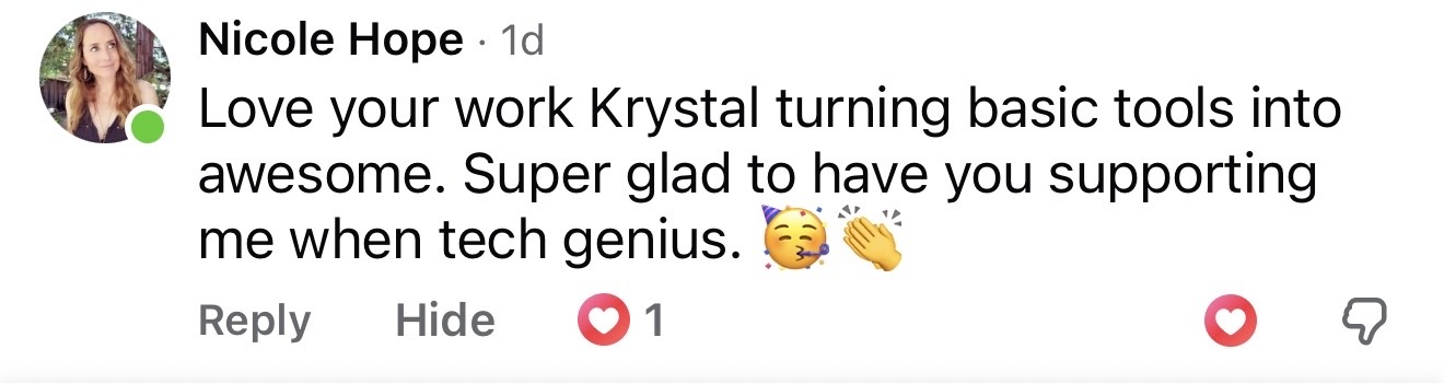 Partner directly with Krystal to simplify your backend systems, organize your tech, and create flow across every area of your business. Reclaim your time, focus, and freedom while building a company that runs efficiently behind the scenes.